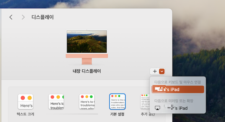아이패드 화면 확장 또는 미러링 설정
