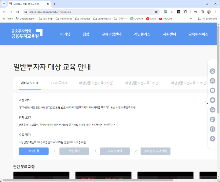 3. 금융투자협회를 통해 1시간가량의 교육이수가 필요합니다.